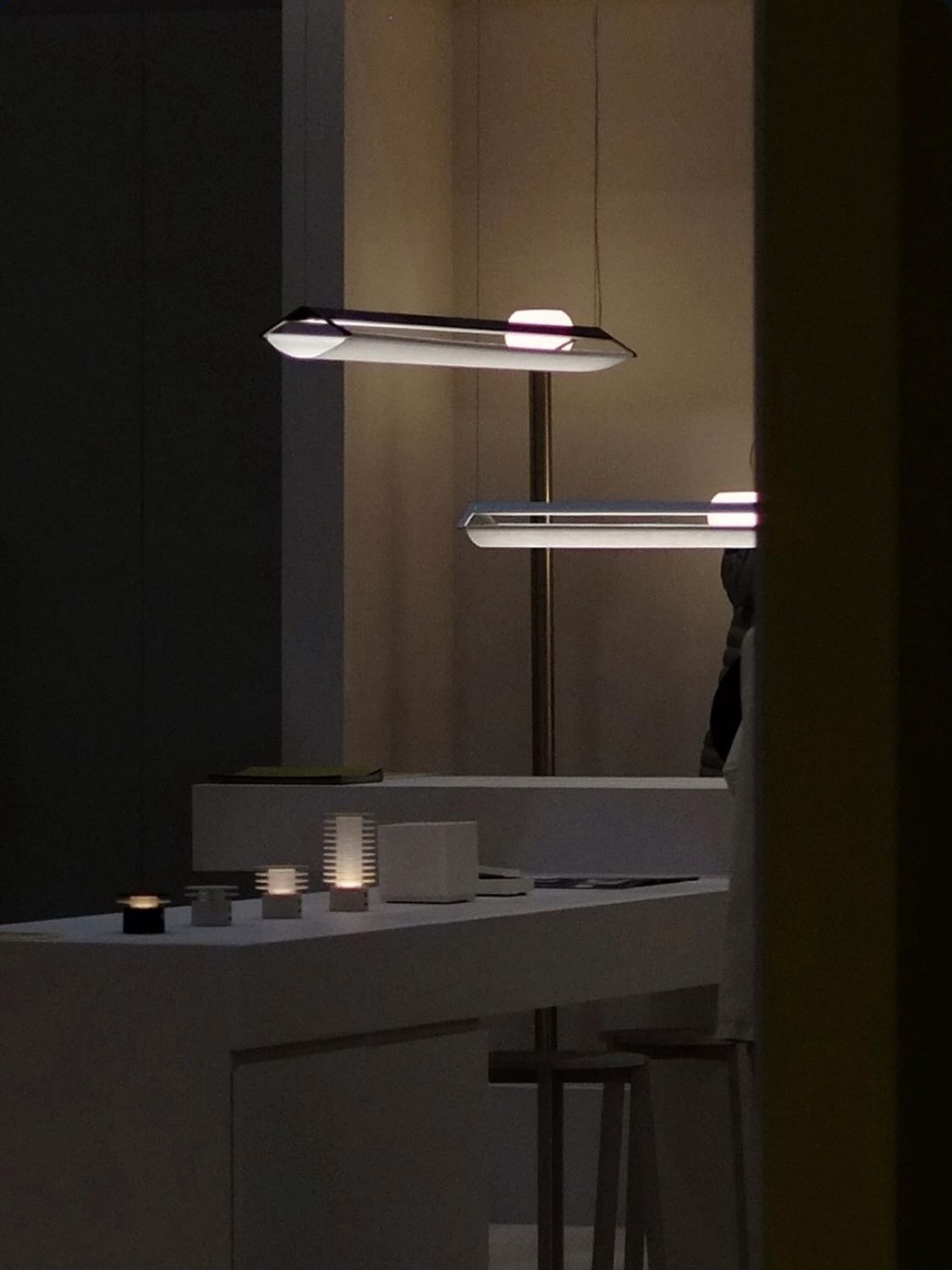 The structural balance of straight lines and planes, coupled with the soft light emanating from the shade, creates a cozy yet sophisticated atmosphere.